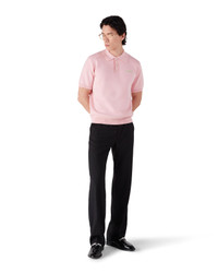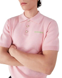 The merino knit short-sleeve polo shirt is a classic design featuring the house's Casablanca logo. Completed with a three-button placket, signature gold rim pearl buttons, and ribbed collar, cuffs, and hem detail. - Merino wool fabric - 56% wool 3% polyamide 1% elastane - Colour: pink - Specialised dry clean only - Made in China - Slim fit