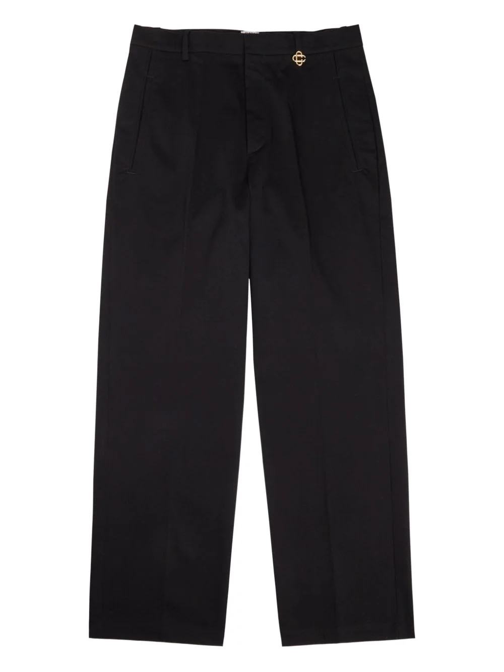 emblem pleated trousers Highlights - Black - Emblem detail - Front pleats - Side welt pockets - Belt loops - Concealed fly fastening Imported Composition Cotton 97%, Elastane 3% Washing instructions Read Manufacturer Guidelines