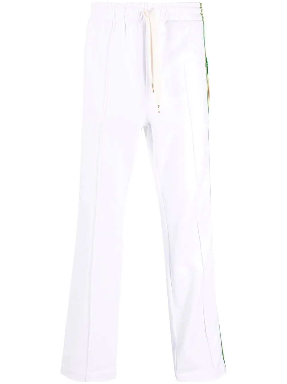 embroidered-logo striped joggers Highlights - White - Organic cotton - Embroidered logo - Side stripe detailing - Drawstring fastening waist - Straight leg Imported Composition Outer: Polyester 100%, Viscose 100%, Organic Cotton 100% Lining: Cotton 100% SIZE & FIT Model measurements Height 6 ft 1 in(1.86 m) Bust/Chest 35.43 in(90 cm) Hips 35.43 in(90 cm) Waist 29.92 in(76 cm) FittingInformation This piece fits true to size. We recommend you get your regular size Cut for a slim fit Made with a mid-weight fabric Washing instructions Dry Clean Only