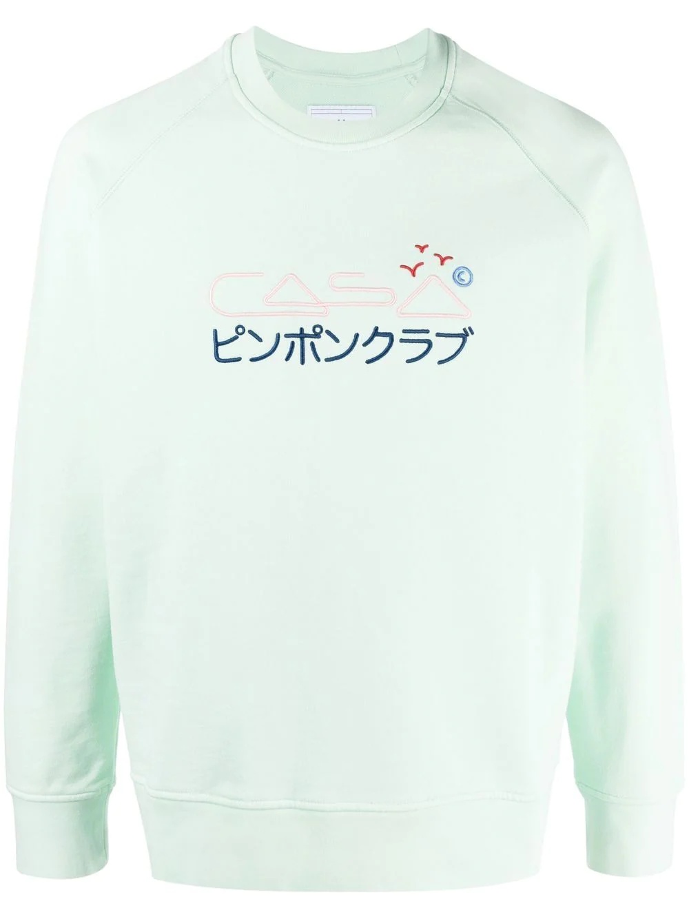 embroidered-logo sweatshirt mint green cotton embroidered logo to the front round neck long raglan sleeves straight hem Imported Composition Cotton 100%, Polyester 100% SIZE & FIT Model measurements Height 6 ft 2 in(1.87 m) Bust/Chest 36.41 in(92.5 cm) Hips 37 in(94 cm) Waist 29.52 in(75 cm) FittingInformation This piece fits true to size. We recommend you get your regular size Cut for a relaxed fit Made with a mid-weight fabric Washing instructions Machine Wash