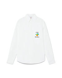 The embroidered orange oxford shirt is a long-sleeve design, crafted from cotton fabric and features an embroidered orange - one of the house's design elements - and Casablanca text. Completed with a breast pocket, a buttoned-down pointed collar, hidden front button closure, and interlocking CC logo corozo buttons. - Cotton fabric - Main: 100% cotton - Orange embroidery artwork patch - Colour: white - Specialised dry clean only - Made in Portugal - Fits true to size, take your regular size - The model is 185cm/6'1 and is wearing a size M