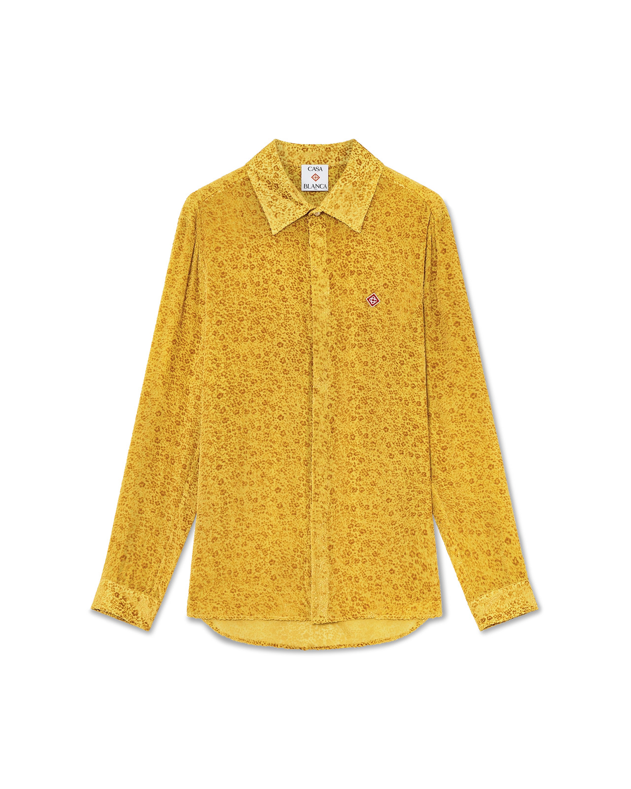 The Floral Devoré silk shirt is a long-sleeve tailored design crafted from devoré silk fabric. Completed with a point collar, hidden button closure, interlocking CC logo corozo buttons, a signature diamond logo, and gold rim enamel buttons at the collar and cuffs. - Devoré silk fabric - Main: 56% viscose 44% silk - Applique: 100% viscose - Colour: gradient multicolour - Specialised dry clean only - Made in Italy - The model is 185cm/6'1 and is wearing a size M