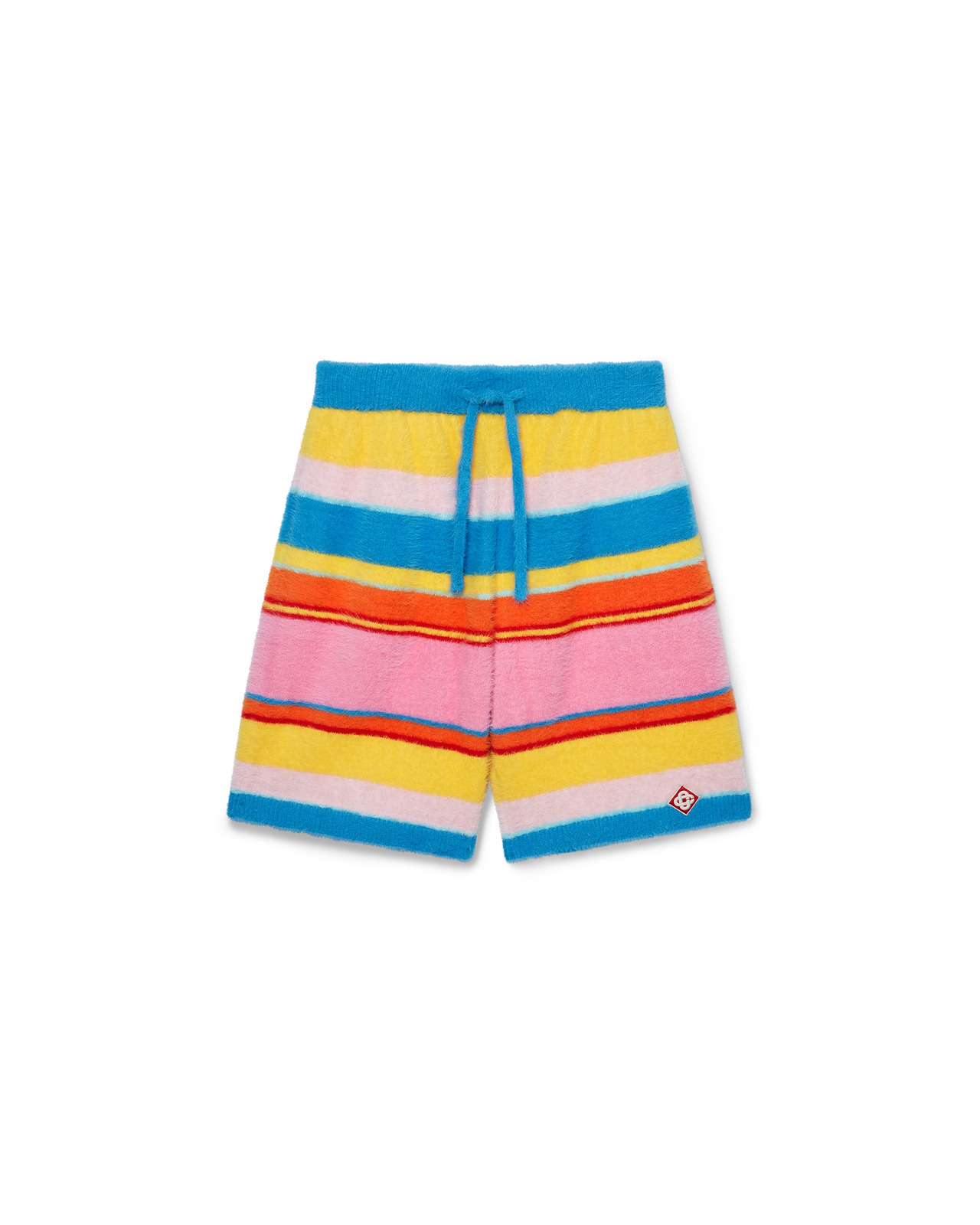 The fluffy oversized shorts are a knee-length design crafted from stripe, fluffy knitted fabric. Completed with the house's signature diamond logo, an elasticated waistband, drawstring fastening, slanted front pockets and a back patch pocket. - Fluffy knitted fabric - Main: 85% polyamide 15% cotton - Colour: blue multicolour - Specialised dry clean only - The model is 185cm/6'1 and is wearing a size M