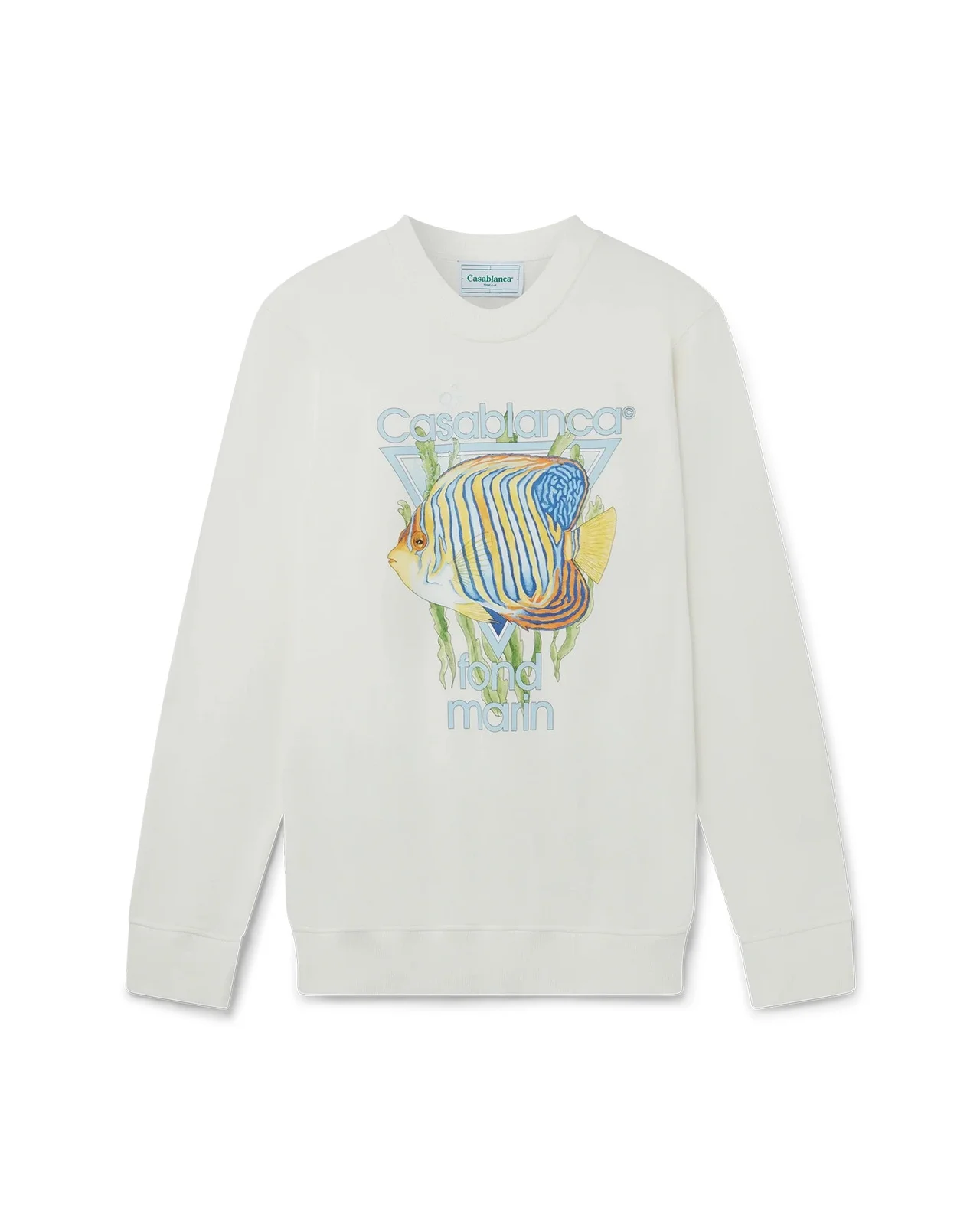 The Fond Marin screen-printed organic cotton unisex sweatshirt features a seasonal artwork inspired by the Mexican artist Pedro Linares, fantasy creatures depicted in kaleidoscopic colours are a form of spirit animals. Completed with a classic crewneck, long sleeves and Casablanca Paris branded label, designed for a relaxed fit. 100% organic cotton Colour: off-white Delicate machine wash Made in Portugal Fits true to size, take your regular size