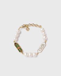 The Casablanca Laurel Pearl Bracelet combines luxurious vintage design with a modern streetwear aesthetic. Delicate, freshwater pearl strings meet hand-painted enamel laurel and diamond logo plaques - all on gold-plated brass. A fine lobster clasp ensures a secure fit. - Gold-plated brass and hand-painted enamel - Freshwater pearls Article Number: APF25-JW-091-01 Gender: Men Color: BRASS/ENAMEL/PEARL Material: 100% Gold-plated brass and hand-painted enamel