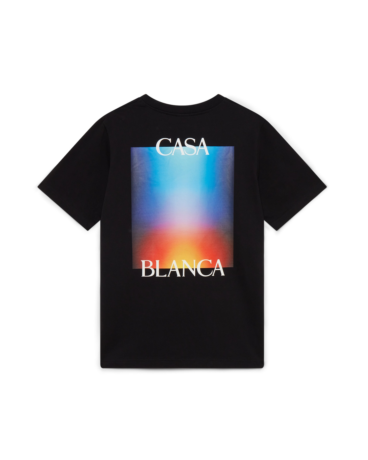 The Gradient Casa Logo t-shirt is a short-sleeved printed design crafted from organic cotton fabric featuring the house's seasonal gradient inspired by a futuristic interpretation of the Casablanca gradient: a halo shape inspired by vintage sci-fi posters and records. Completed with a classic crew neck. - 100% organic cotton - Colour: black - Delicate machine wash - Made in Portugal - Exclusive to casablancaparis.com - Please note our t-shirt sizing has been updated from SS25, we advise choosing your usual size. Previous clients seeking the same fit should size down.