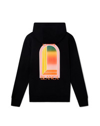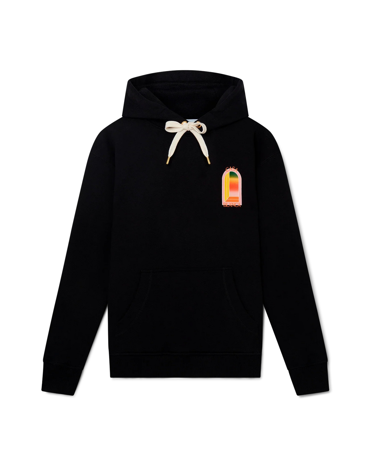 The Gradient L'Arche hooded sweatshirt is a printed design featuring the house's signature arch print in a gradient colourway of warm yellow, orange, pink and green, representative of the rich exchanges across cultural disciplines in African art, music and film. Crafted from a cotton blend fabric and completed with a hoodie, gold-tipped drawstring fastening, rib cuffs and hem. Printed cotton fabric 100% organic cotton Colour: black/gradient arch logo Delicate machine wash Made in Portugal Fits true to size, take your regular size