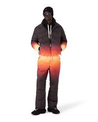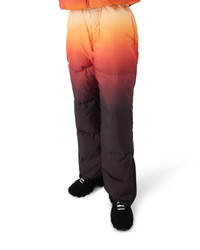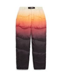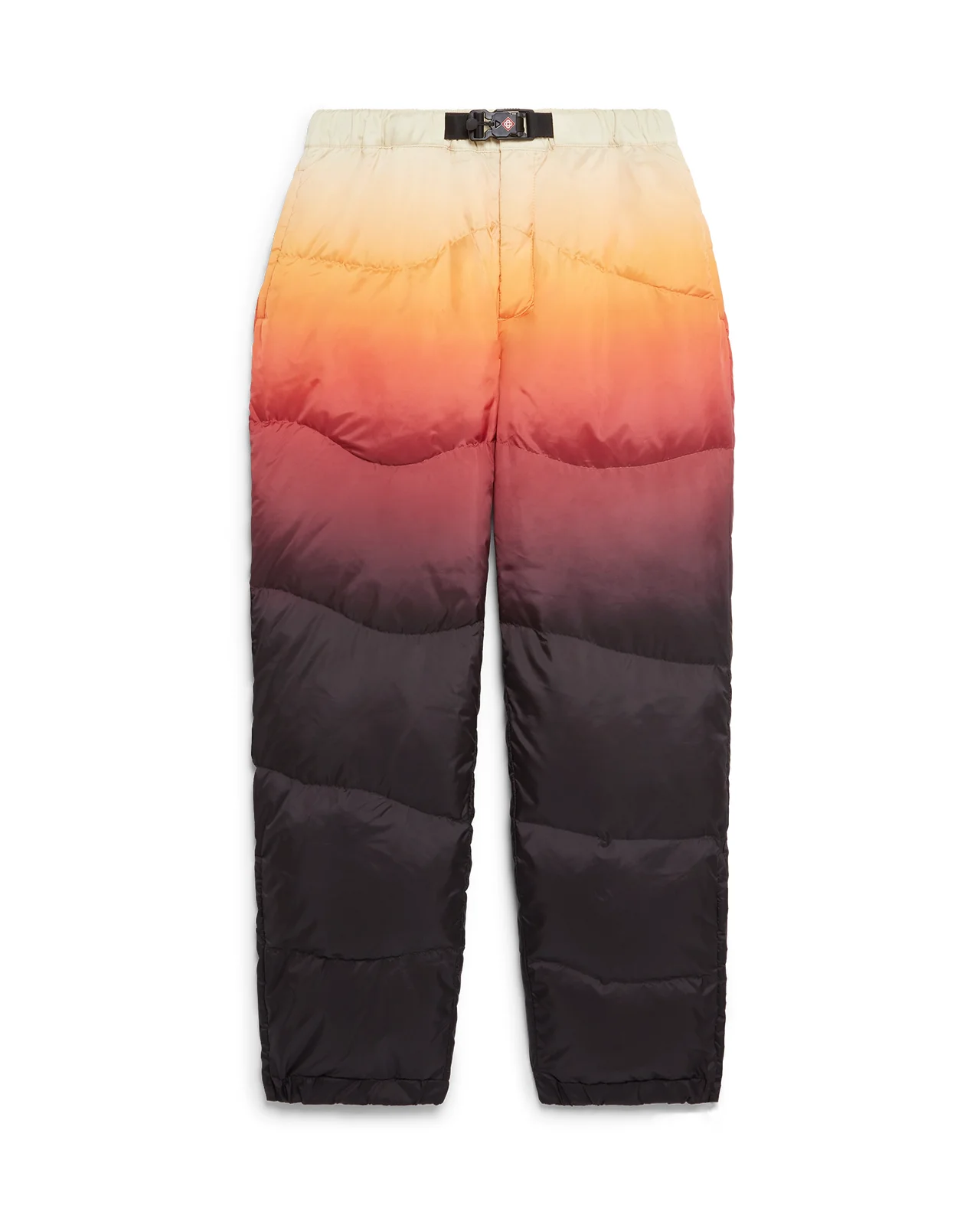 The ski trousers are a refined apres-sport design crafted from gradient printed down fabric, featuring a multicolour gradient inspired by spectacular alpenglow illuminating Japan's mountainous countryside. Evoking the magical transition when pink and purple hues wash across snow-covered peaks and rural valleys glow with last light. Completed with elasticated front closure, side pockets with zip closure and back pockets adorned with silver-plated hardware, and zip closure at the ankles. - Gradient printed down fabric - Main: 100% polyester - Lining: 96% polyester - Padding: 80% down 20% feather - Colour: gradient multicolour print - Specialised dry clean only - Made in Italy - Relaxed fit - The model is 187cm/6'1 and is wearing a size M - Exclusive to casablancaparis.com, Paris Flagship store and selected retailers