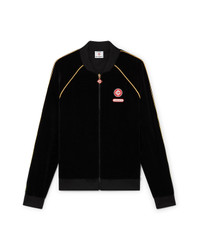 The gradient piping velour track jacket is a long-sleeve design featuring the house's interlocking CC logo and Casablanca logo patch. Completed with a zip closure featuring signature diamond logo zipper tab, piping details from the shoulders, down the sleeves, and across the chest and back, a Casablanca logo below the yoke written in Japanese, and a rib baseball collar, cuffs and hem. - Velour fabric - Main: 89% cotton 11% polyamide - Lining: 100% polyester - Colour: black - Specialised dry clean only - Made in Portugal - Relaxed fit - The model is 187cm/6'1 and is wearing a size M