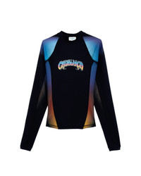 The Gradient rash vest is a long-sleeve close-fitting printed design featuring the season's gradient colours and crafted from swim fabric. Finished with a hand-drawn typography of the Casablanca logo inspired by the gothic typeface used in tattoos, a high neck, and gradient sides and sleeve panels. - Gradient poly blend fabric - 78% polyester 22% elastane - Colour: black/gradient multicolour - Delicate machine wash - Made in Portugal - The model is 185cm/6'1 and is wearing a size M