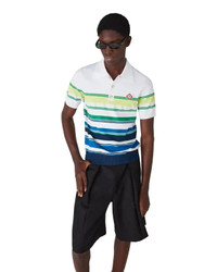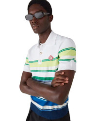 The gradient striped polo shirt is a refined knitted design crafted from viscose featuring the house's signature diamond logo. Completed with a ribbed collar, cuffs, hem, and placket, stripe detailing throughout the bodice, and a classic three-button placket with signature gold rim pearl buttons. - Technical fabric - 61% viscose 17% cotton 12% polyester 10% polyamide - Colour: white/blue/green - Delicate machine wash - Made in China - Relaxed fit - - The model is 189cm / 6'2 and is wearing size M - Exclusive to casablancaparis.com along with our Paris and LA flagship stores