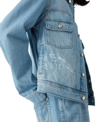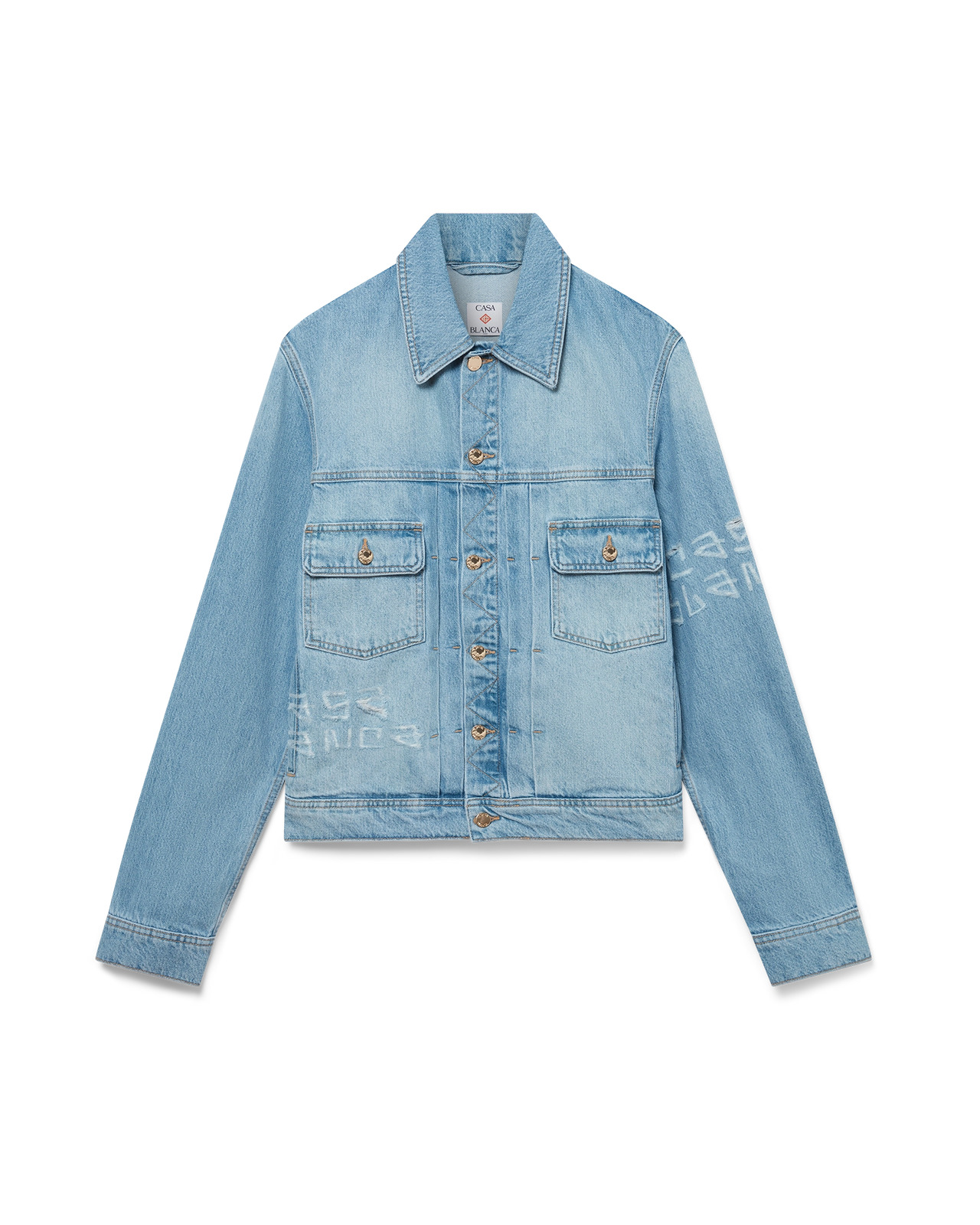 The Graffiti denim jacket is a long-sleeve classic silhouette featuring the house's signature stacked logo in a graffiti-style text etched into the fabric. Completed with branded gold-plated hardware, button closure, breast flap pockets, vertical welt pockets, a branded leather patch, and tucked details on the front panels. - Cotton fabric - 100% cotton - Colour: light blue vintage wash - Specialised dry clean only - Made in Portugal - Fits true to size, take your regular size - The model is 187cm/6'1and is wearing a size M