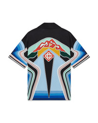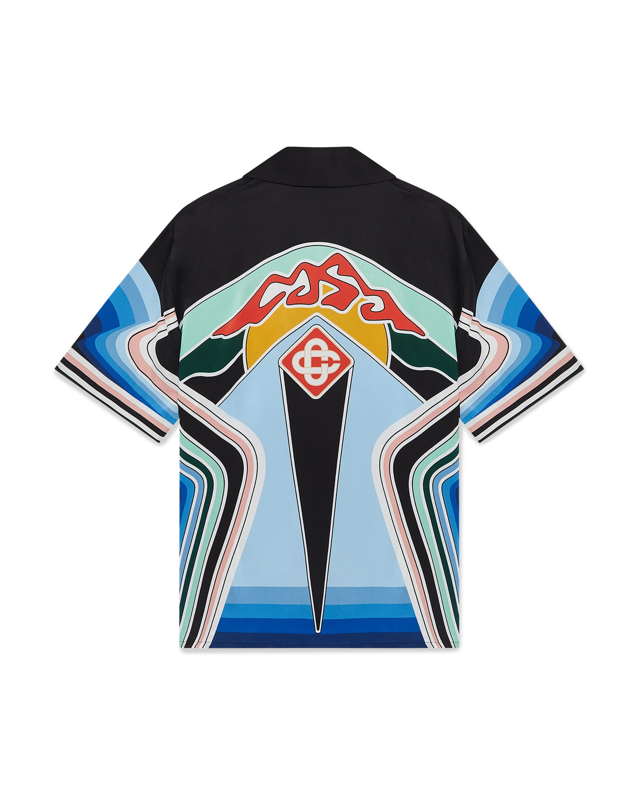 The Graphic Mountain silk short-sleeve shirt is an all-over printed design featuring the house's signature artwork, following the story of the iconography style we've been exploring - a digitally built artwork that showcases our mountain logo, with different lines and gradient, that create a strong branding - crafted from silk satin fabric. Completed with hidden button closure, interlocking CC logo corozo buttons, and the house's signature diamond logo. - Printed silk satin fabric - 100% silk - Graphic Mountain print multicolour - Specialised dry clean only - Made in Italy - Relaxed fit - The model is 187cm/6'1 and is wearing a size M