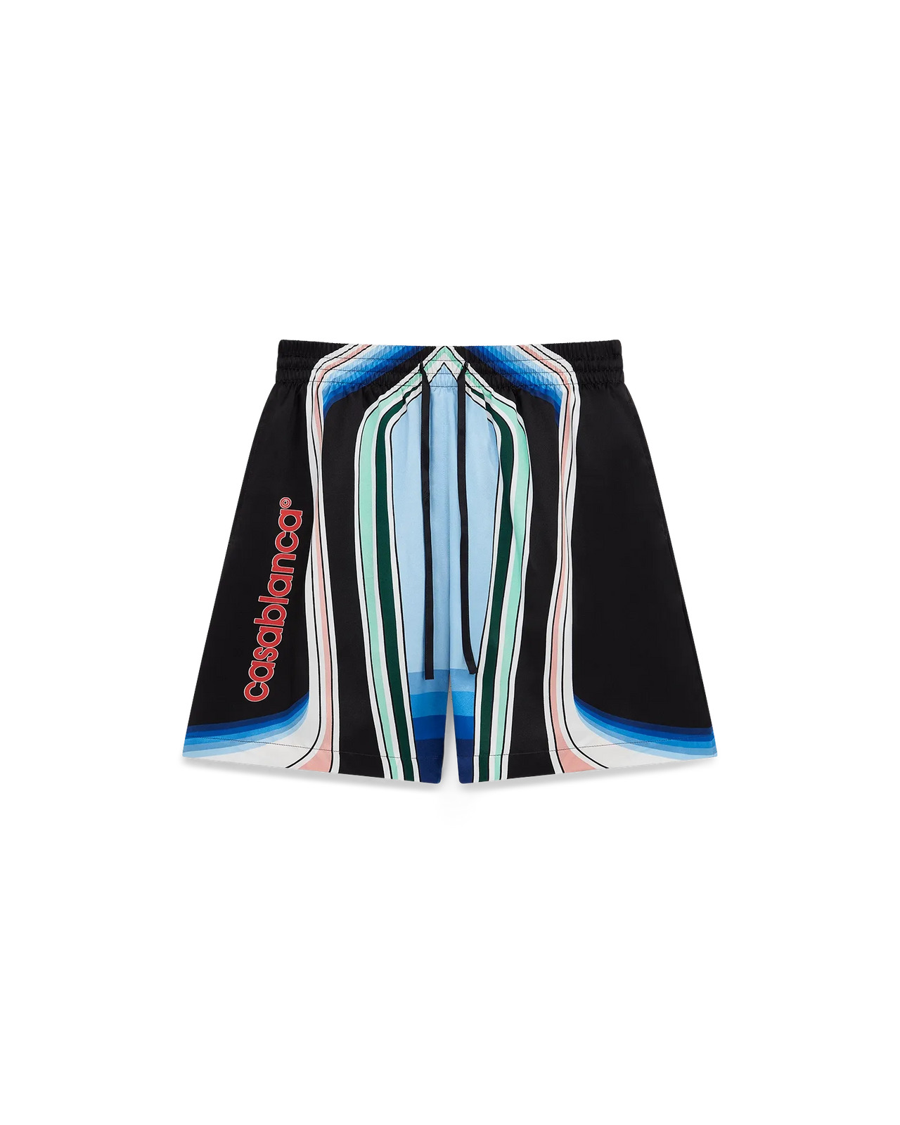 The Graphic Mountain silk shorts are an all-over printed design crafted from silk satin fabric. Completed with an elasticised waistband, drawstring fastening, in-seam side pockets, and a back pocket. - Printed silk satin fabric - 100% silk - Graphic Mountain print multicolour - Specialised dry clean only - Made in Italy - Relaxed fit - The model is 187cm/6'1 and is wearing a size M
