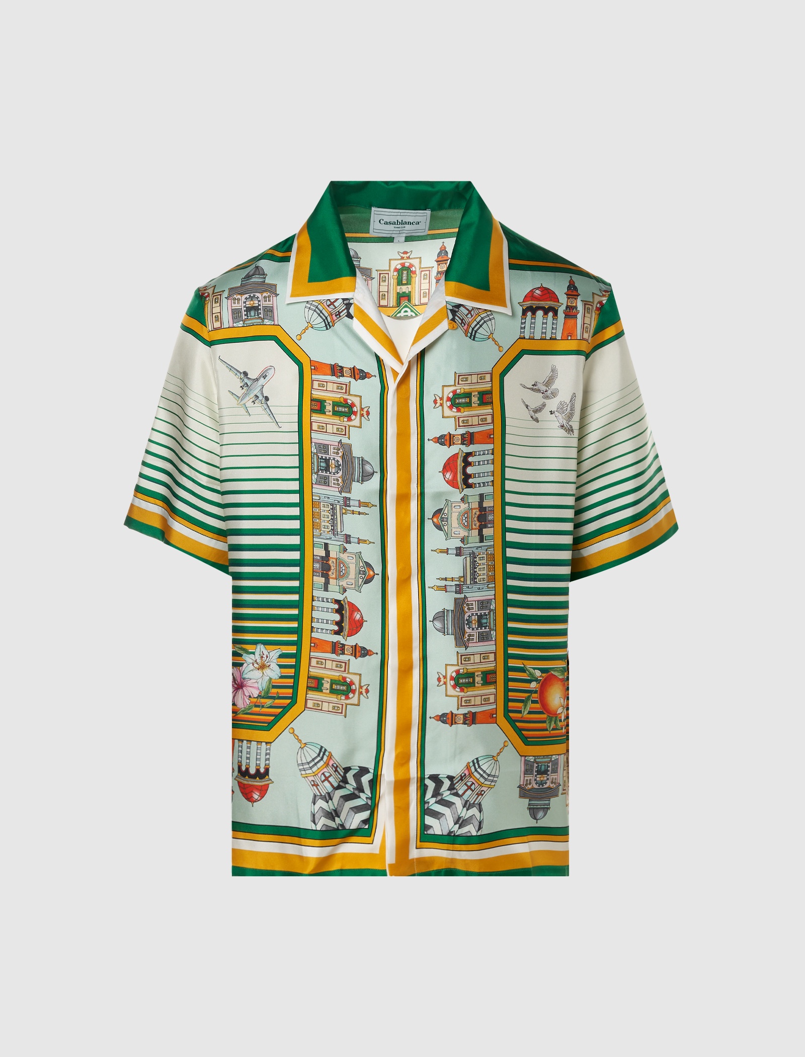 Relaxed-fit short sleeve silk short. Cuban collar. Graphic Mediterranean print throughout. Button closures at front. - 100% Silk SKU: U-MF23-SH-003-11