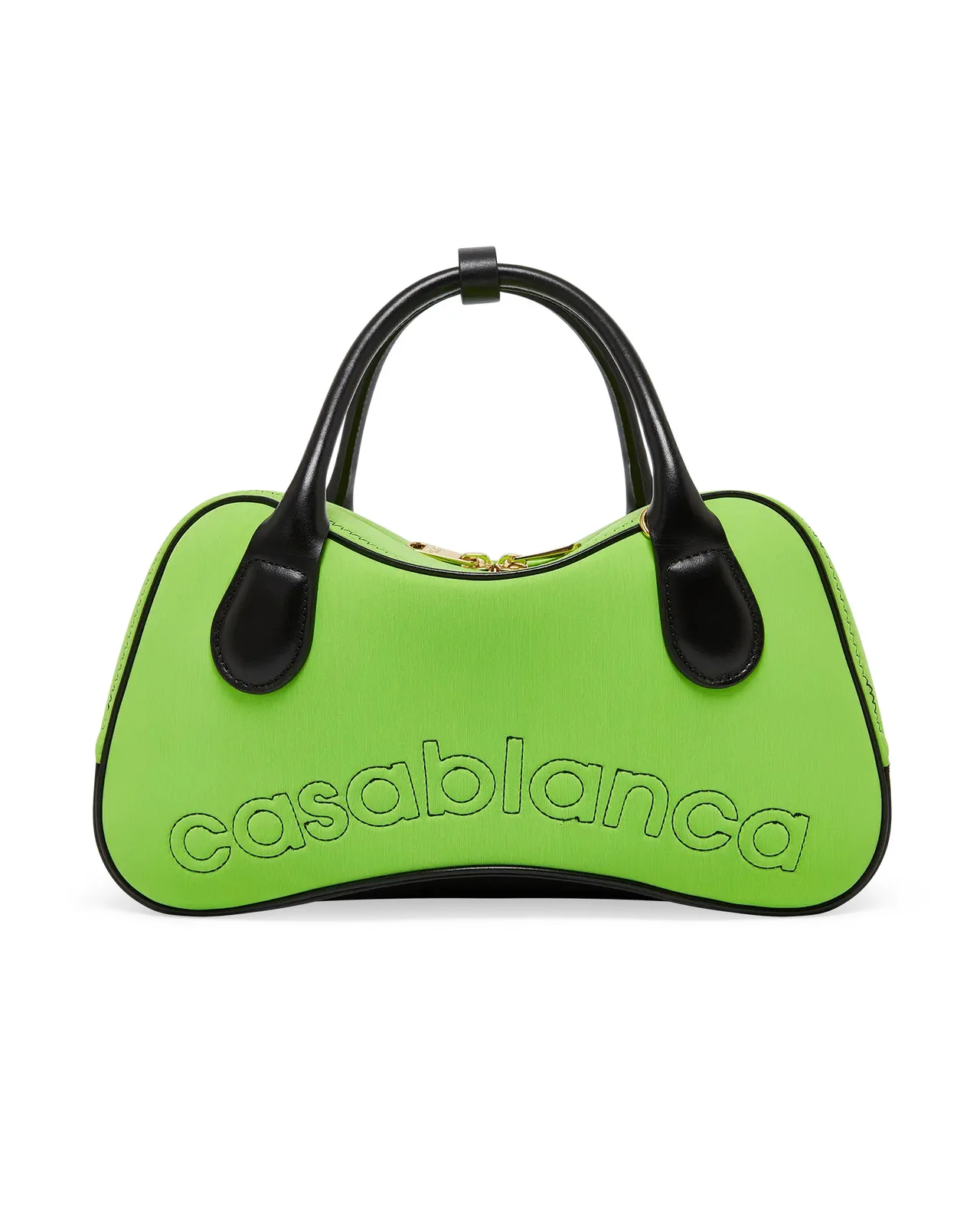 The green bowling mini bag is crafted from Italian calf leather, adorned with the house's signature Casablanca logo. Completed with high-quality metal hardware, zip closure, piping detail, an adjustable shoulder strap, and two grab handles. - Calf leather - 100% calf leather - Lamb leather lining - Zamac hardware - Colour: green - Clean with a soft, dry cloth - Made in Italy