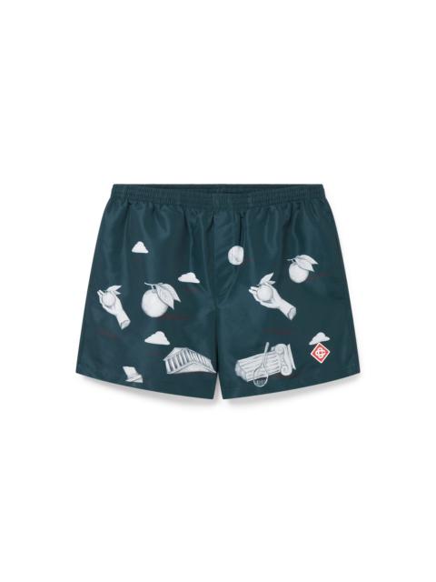 The Metaphysical swim shorts are a classic design crafted from a technical polyester fabric featuring the house's signature diamond logo and repeat trompe l'oeil artwork of the stone effect with the light drawing of core design elements. Completed with an elasticated waistband, an internal drawstring, in-seam side pockets, a lining, and an internal pocket. - Polyester fabric - Main: 100% polyester - Lining: 80% polyester 20% elastane - Applique: 100% polyvinyl chloride - Metaphysical print - Delicate machine wash - Wash and iron inside out, do not tumble dry - Made in Portugal - Fits true to size, take your regular size - Model is 187cm/6'1 and is wearing a size M