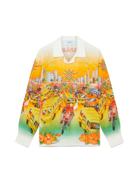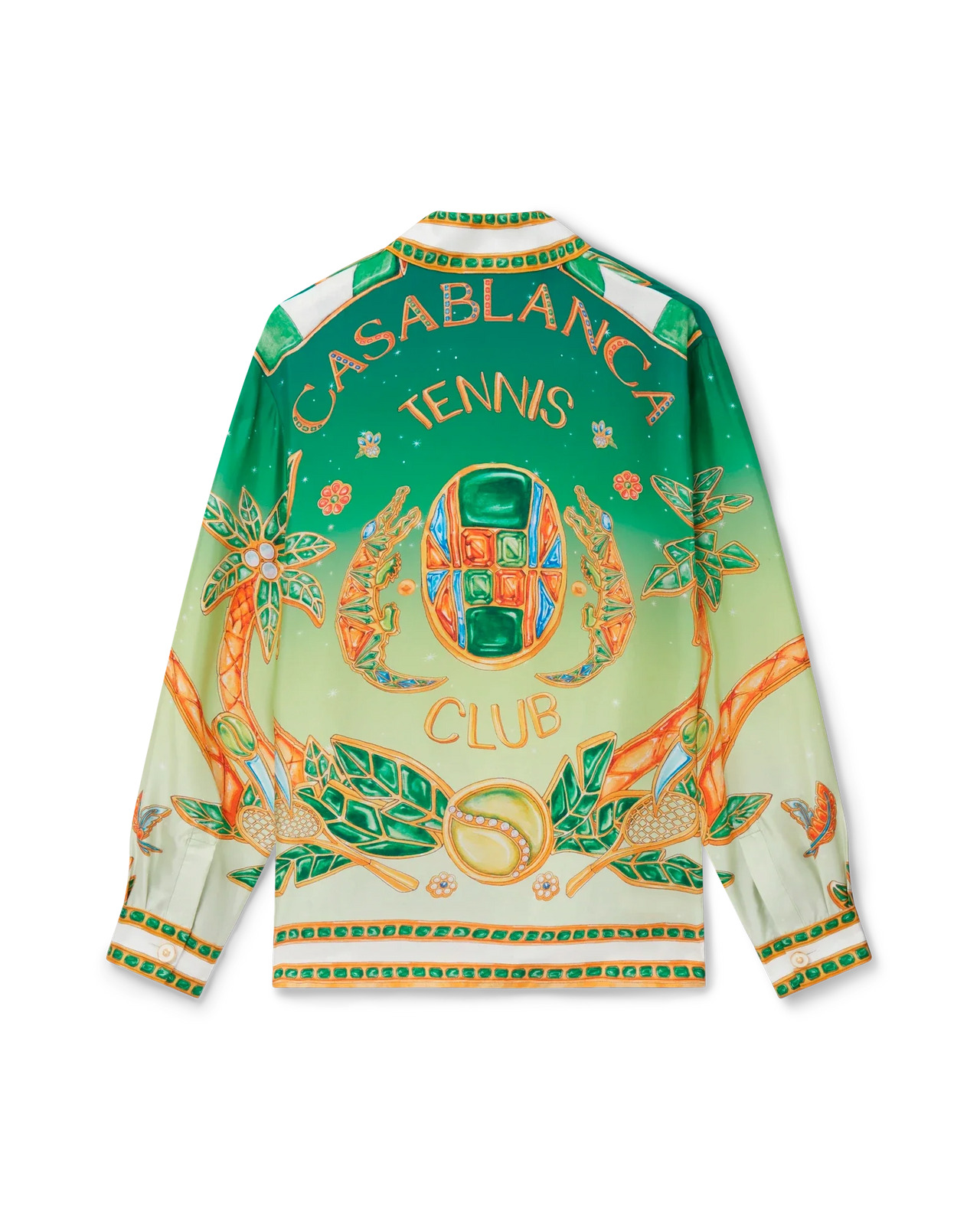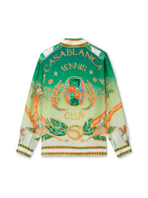 The Joyaux D’Afrique silk shirt is a long-sleeve all-over printed style featuring seasonal artwork incorporating nature references from Nigeria and the house's jewellery designs blended with our traditional tennis club layout. Crafted from a silk twill fabric with a cuban collar, button closure, and gold rim enamel buttons. Printed silk twill fabric 100% silk Joyaux D'Afrique print green Specialised dry clean only Made in Italy Fits true to size, take your regular size The model is 187cm/6’1 and is wearing a size M
