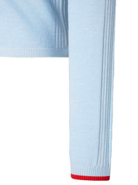 zip embroidered cardigan Highlights - Blue - Ribbed trims - Embroidered logo - Front zip closure - High collar - Vertical ribbed knit Imported Composition Merino 76%, Polyester 24% Washing instructions Read Manufacturer Guidelines
