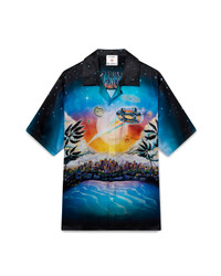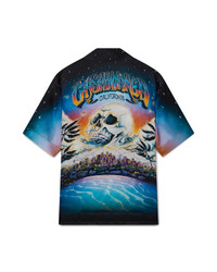 The La Premonition short-sleeve silk shirt is a refined printed design featuring artwork inspired by an eerie vision of the skyline of LA at night, with UFO elements touching on vintage sci-fi inspiration. Completed with a Cuban collar, a breast pocket, hidden button closure with interlocking CC corozo buttons. - Silk twill fabric - 100% silk - La Premonition print multicolour - Specialised dry clean only - Made in Italy - Relaxed fit - Exclusive to casablancaparis.com and our Los Angeles Flagship store