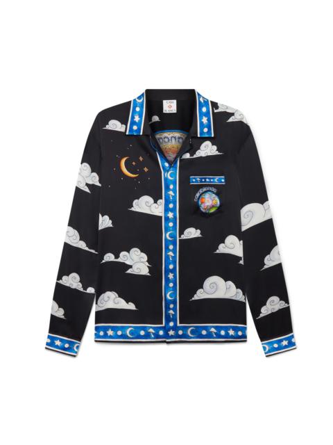 The LA Premonition silk shirt is a short-sleeve design crafted from a printed silk satin fabric featuring the season's artwork, inspired by an eery vision of the skyline of LA at night, with UFO elements touching on vintage sci-fi inspiration. Completed with a Cuban collar, a breast pocket, hidden button closure with interlocking CC corozo buttons. - Silk satin printed fabric - 100% silk - La Premonition multicolour - Specialised dry clean only - Made in Italy - The model is 186cm/6'1 and is wearing a size M