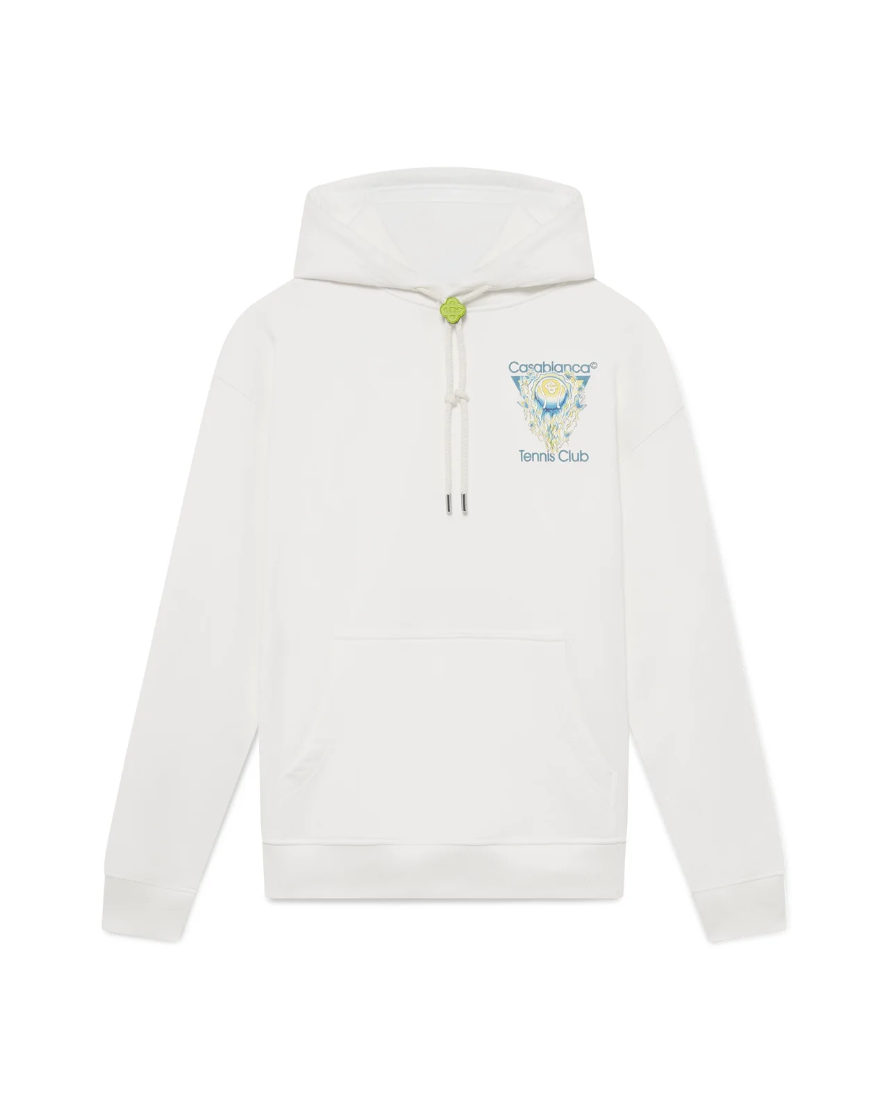 The Tennis Club Icon hooded sweatshirt is a refined sportswear design featuring artwork of the house's distinctive tennis ball logo in flight, reflecting the fundamental balance of power, speed and control. Completed with a drawstring fastening, a hood, ribbed cuffs and hem, and a kangaroo pocket. - Cotton loopback jersey fabric - 100% organic cotton - Colour: white - Delicate machine wash - Made in Portugal - Relaxed fit