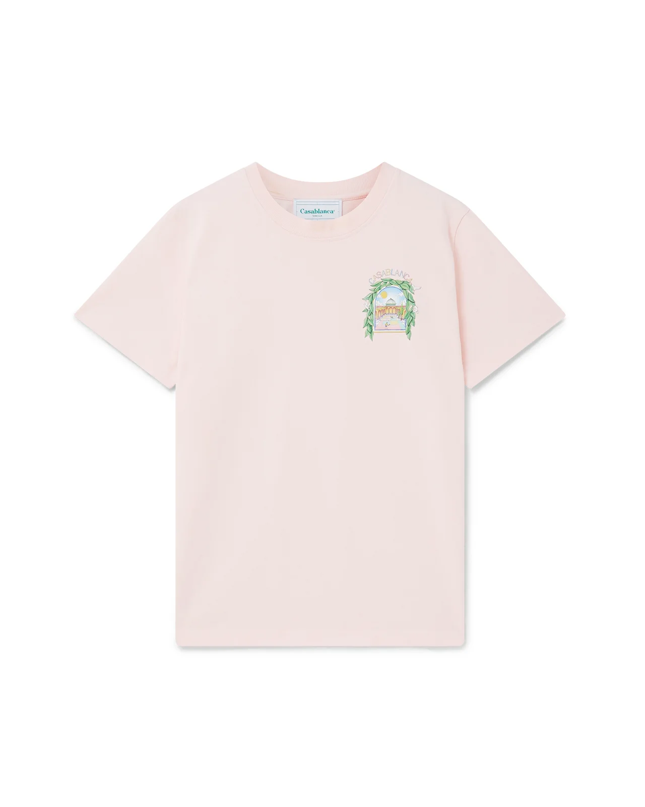 The L'Arche de Tennis t-shirt is a refined short-sleeve printed design featuring the house's seasonal artwork with design elements of the arch, nature, architecture, and tennis. Completed with a classic crewneck and a relaxed silhouette. - Cotton jersey fabric - 100% organic cotton - Colour: pale pink - Delicate machine wash - Made in Portugal - Relaxed fit - Exclusive to casablancaparis.com and our Paris Flagship store