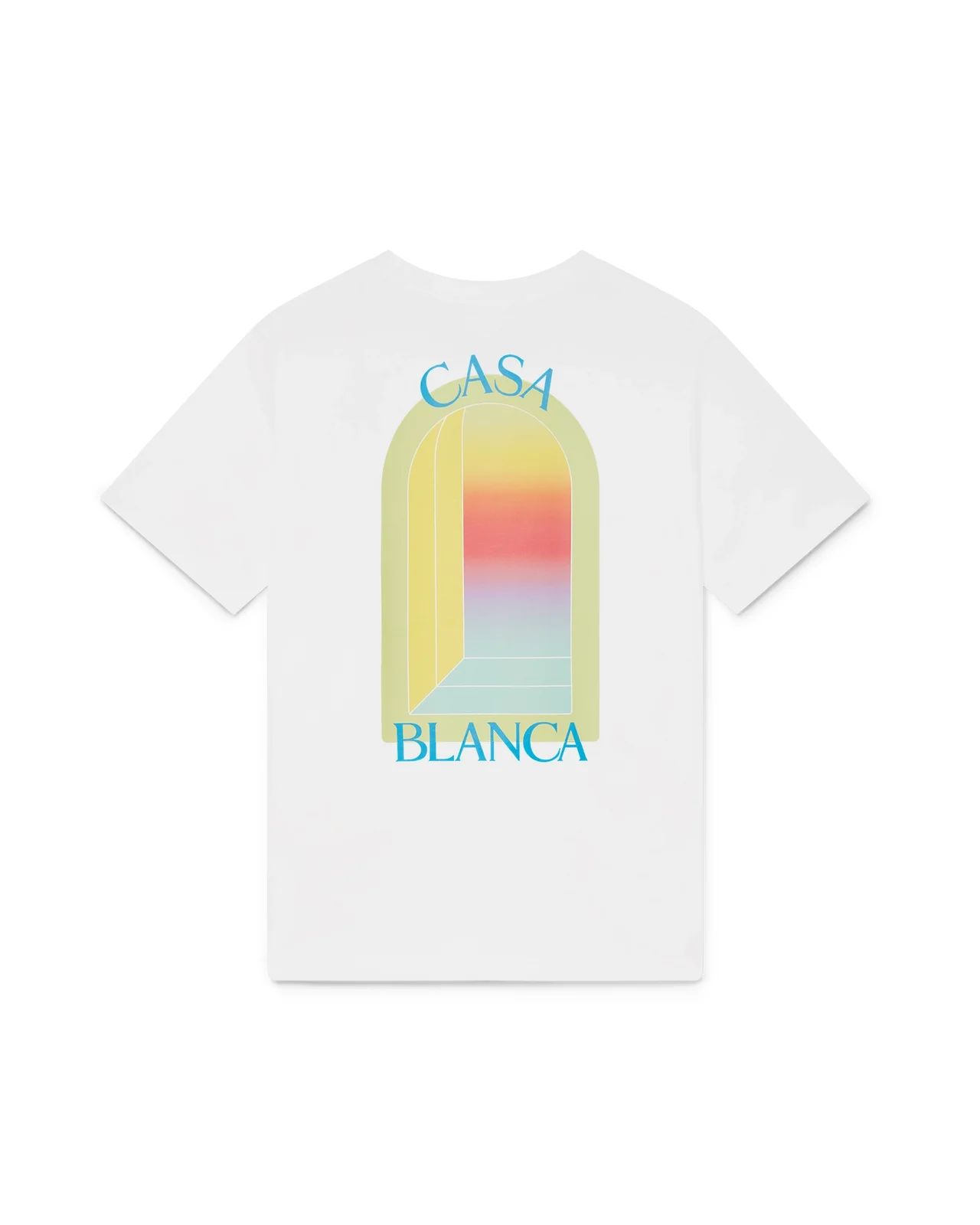 The L'Arche t-shirt is a short-sleeve design featuring a signature screen-printed artwork of the Arch, an abstract symbol of strength, crafted from organic cotton. Finished with a ribbed crew neckline. - Printed cotton fabric - 100% organic cotton - Colour: white - Delicate machine wash - Made in Portugal - Relaxed fit