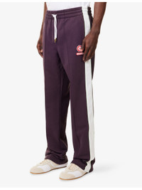 PRODUCT DETAILS - Casablanca cotton jogging bottoms - 100% cotton - Relaxed fit, straight leg, drawstring elasticated waistband, logo patch and pressed creases at front, applique at sides, patch pocket at back - Machine wash at 30°C - Made in Portugal - Model is 6ft 2in/1.88m and wears a size medium - Midweight, slight stretch Ref: R04522895