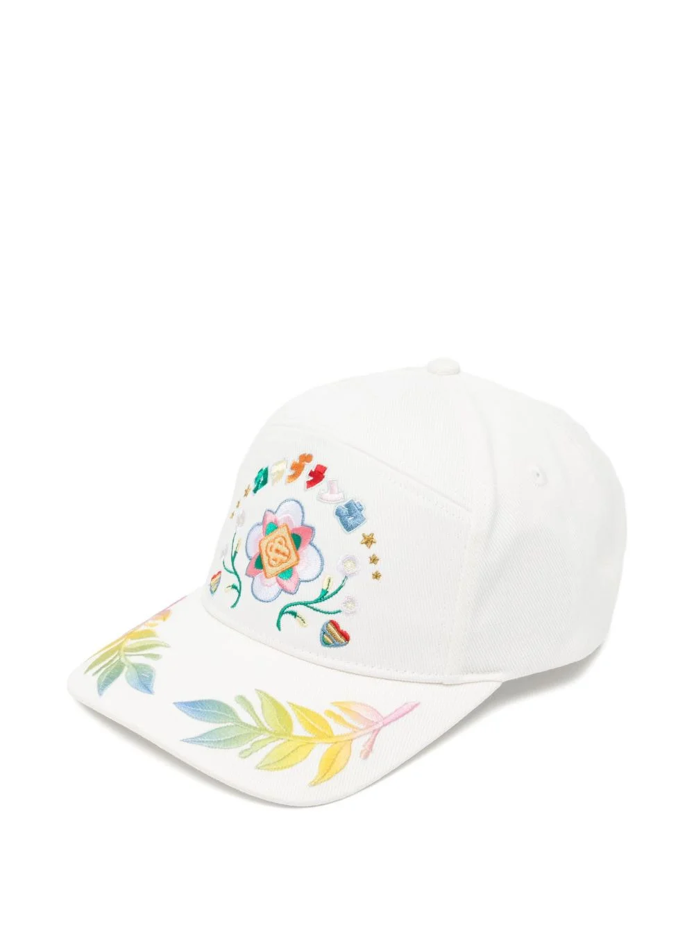 Laurel embroidered cap Highlights - White - Adjustable strap to the rear - Curved peak - Round crown Imported Composition Cotton 100% SIZE & FIT Measurement BRIM 2.67 in(6.8 cm) CIRCUMFERENCE 24.01 in(61 cm)