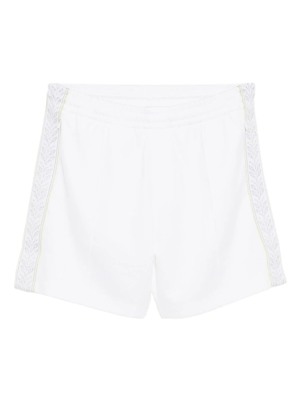 Laurel track shorts Highlights - White - Elasticated waistband with internal drawstring - Zip-fastening pocket Imported Composition Outer: Polyester 54%, Cotton 46% Lining: Polyester 100% SIZE & FIT Model measurements Height 6 ft 2 in(1.87 m) Bust/Chest 35.82 in(91 cm) Hips 37.79 in(96 cm) Waist 29.13 in(74 cm) FittingInformation Designed for a regular fit, offering an even fit over the leg Adjust this piece’s waistband to your preference using the drawstring Made from a midweight non-stretch fabric, this piece offers minimal elasticity when worn Washing instructions Dry Clean Only