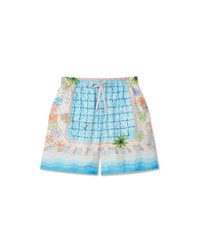 The Le Plongeon silk shorts are a familiar design crafted from printed silk twill fabric and feature seasonal artwork inspired by a beautiful day at the hotel's swimming pool and travel idealism viewed from above - giving a new perspective. The colour palette is light and idealistic, comprising soft pastel colours. Completed with an elasticated waistband with drawstring fastening, side pockets, a back pocket and contrast Memphis wave-inspired gradient stripe details on the hem. Printed silk twill fabric 100% silk Le Plongeon print multicolour Specialised dry clean only Made in Italy Fits true to size, take your regular size The model is 187cm/6’1 and is wearing a size M