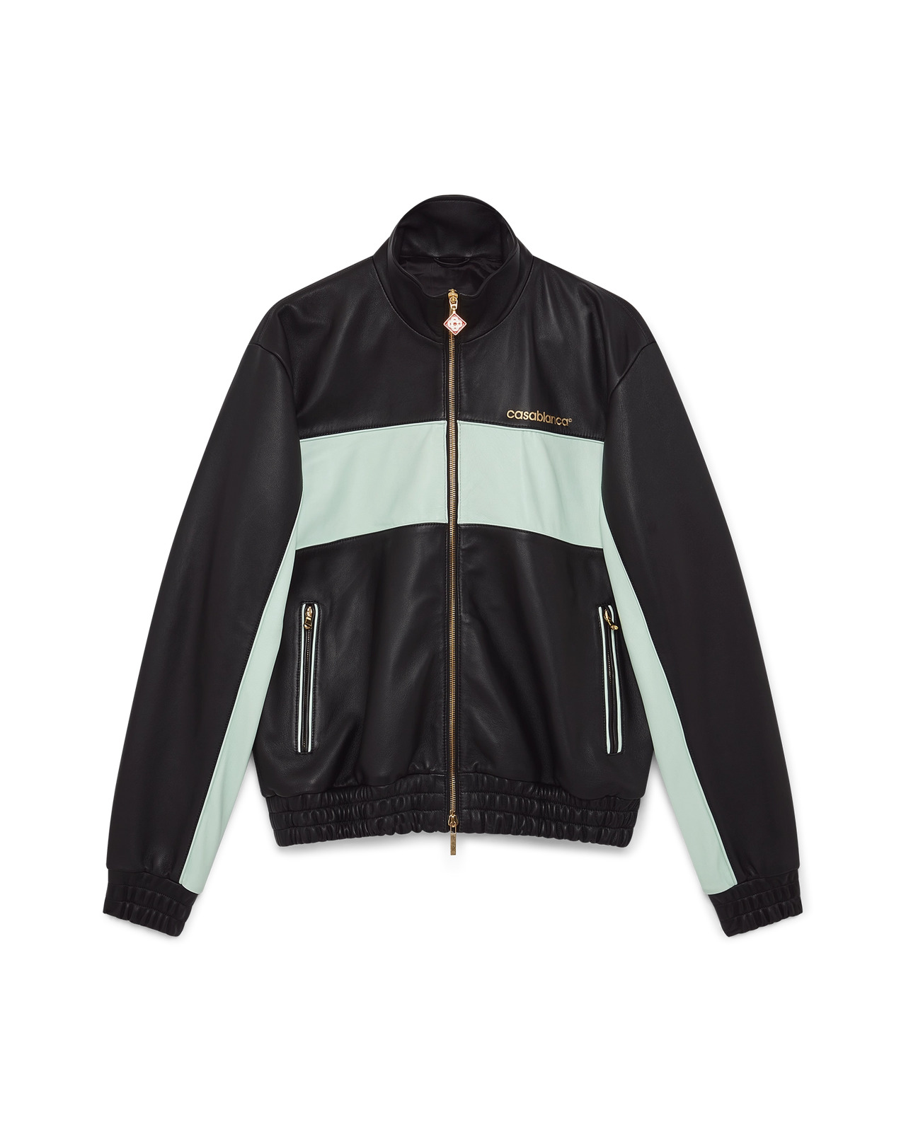 The leather track jacket is a long-sleeve design crafted from lamb nappa. Completed with a lining, a funnel collar, zip closure featuring the house's signature diamond logo zipper tab, slanted welt pockets, and elasticised cuffs and hem. - Leather fabric - Main: 100% lamb nappa - Lining: 100% viscose - Pocket lining: 100% cotton - Colour: black mint - Specialised dry clean only - Made in Turkey - The model is 187cm/6'1 and is wearing a size M