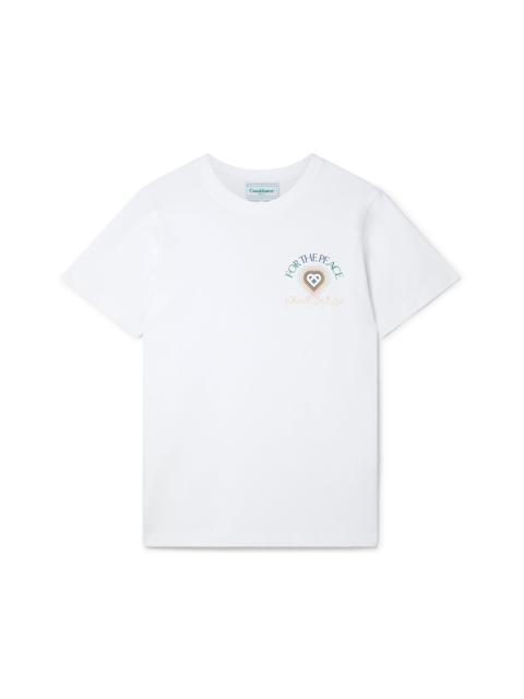 The Les Elements screen-printed organic cotton t-shirt features seasonal artwork incorporating Casablanca symbology and Arabic iconography, with peace doves. Completed with a classic crewneck, short sleeves and Casablanca Paris branded label, designed for a relaxed fit. 100% organic cotton Colour: white Delicate machine wash Made in Portugal Fits true to size, take your regular size