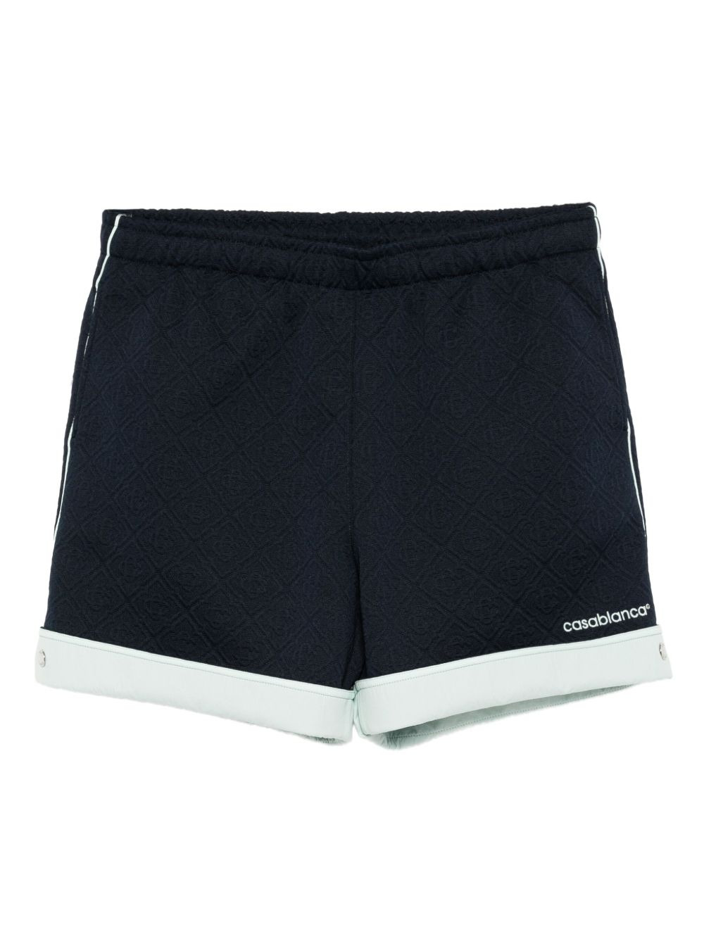 logo-embroidered shorts Highlights - Navy blue - Elasticated waistband with internal drawstring - Turn-up hem Imported Composition Outer: Polyester 65%, Polyamide 18%, Cotton 17% Lining: Polyester 100% SIZE & FIT Model measurements Height 6 ft 3 in(1.9 m) Bust/Chest 19.29 in(49 cm) Hips 38.58 in(98 cm) Waist 32.28 in(82 cm) FittingInformation Designed for relaxed fit, offering a comfortable loose fit over the leg Adjust this piece’s waistband to your preference using the drawstring Made from a midweight non-stretch fabric Washing instructions Dry Clean Only