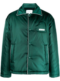 logo-patch padded satin jacket Like so many of its designs, this Casablanca jacket is ‘a modern reimagining of the timeless apres-sport aesthetic.’ It’s crafted in lustrous emerald satin that’s padded for subtle volume and branded with a logo patch at the chest surrounded by a stitched heart. White piped trims reinforce its smart and retro nature. Highlights - Emerald green - Satin weave - Padded design - Heart motif - Piped-trim detailing - Logo patch at the chest - Spread collar - Long sleeves - Front press-stud fastening - Two side welt pockets - Straight hem Imported Composition Outer: Polyamide 96%, Polyurethane 4% Lining: Polyester 100% SIZE & FIT Model measurements Height 6 ft 2 in(1.87 m) Bust/Chest 36.41 in(92.5 cm) Hips 35.43 in(90 cm) Waist 29.52 in(75 cm) FittingInformation Designed for a relaxed fit, this piece allows for comfort and movement when worn The internal drawstring at the hem allows for fitted preferences Made from a midweight non-stretch fabric This piece fits true to size – take your usual size