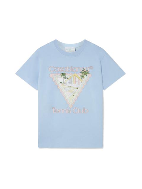 The Maison De Reve t-shirt is a short-sleeve printed design featuring seasonal artwork with references from a mid-century Palm Springs home and signature design elements - palm trees and a tennis court with Memphis wave-inspired details which serves as a foundational design element - in this season's pastel colours. Crafted from organic cotton, complete with a classic crew neck. 100% organic cotton Colour: blue Delicate machine wash Made in Portugal Fits true to size, take your regular size