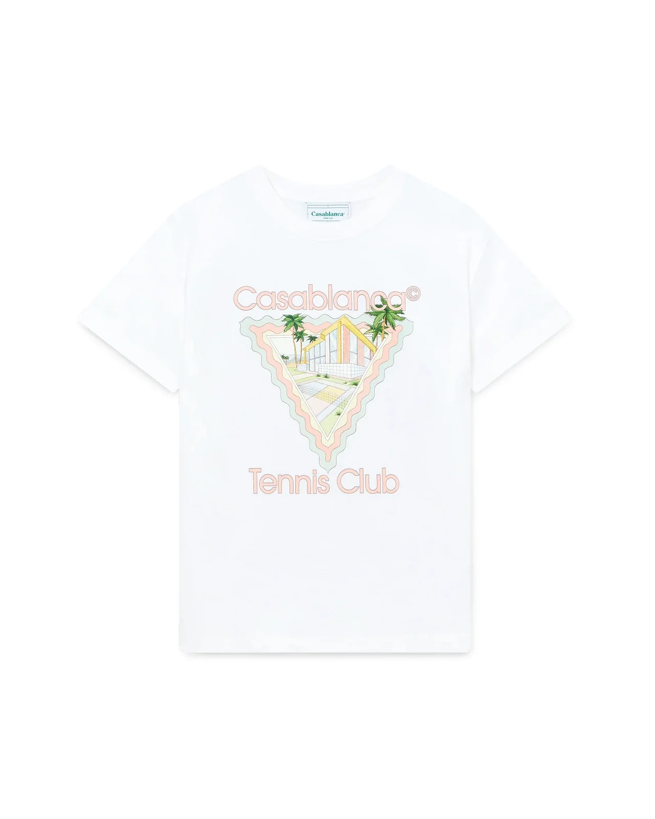 The Maison De Reve t-shirt is a short-sleeve printed design featuring seasonal artwork with references from a mid-century Palm Springs home and signature design elements - palm trees and a tennis court with Memphis wave-inspired details which serves as a foundational design element - in this season's pastel colours. Crafted from organic cotton, complete with a classic crew neck. 100% organic cotton Colour: white Delicate machine wash Made in Portugal Fits true to size, take your regular size The model is 187cm/6’1 and is wearing a size M