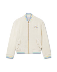 The Maison Pastelle bomber jacket is an embroidered classic design crafted from a cashmere terry wool blend fabric. This piece features one of the brands most recognisable elements; the arch as well as a rounded dome, all inspired from ‘looking at the beauty of the world’ and stacked logo in pastel coloured chenille embroidery. The colour palette for this collection is light and idealistic, emphasising ethereal themes core to our brand. Completed with zip front closure featuring the signature interlocking CC logo, pastel colour striped detail on the rib collar, cuffs and hem, front flap pockets with gold-plated stud closure. Cashmere terry wool fabric 39% wool 22% viscose 17% nylon 14% polyester Colour: off-white Specialised dry clean only Made in Portugal Fits true to size, take your regular size