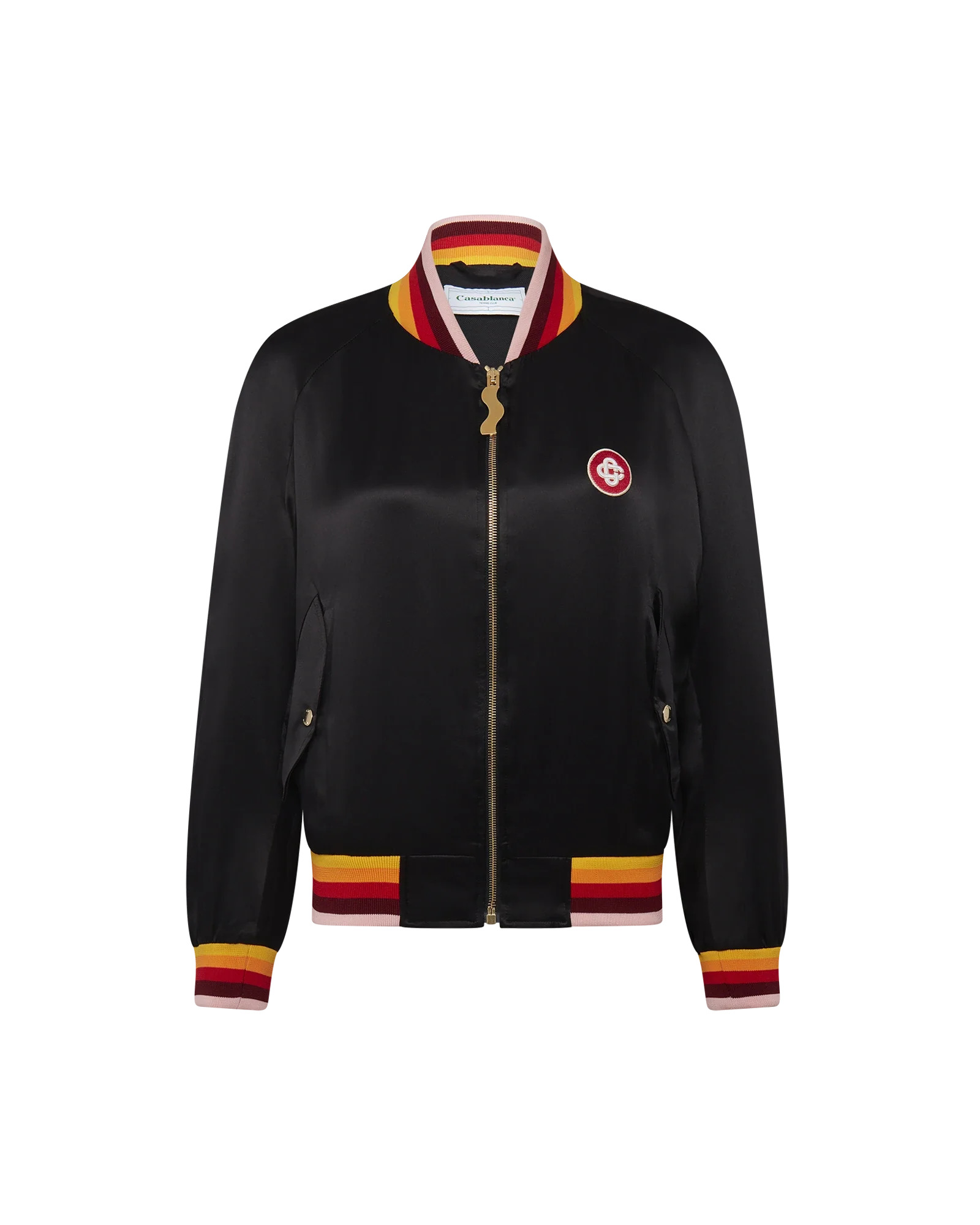 The Masao San Souvenir Jacket is a take on the house’s signature souvenir jacket accompanied by cuffs, collar, hemline and our branded monogram on the chest. 100% Silk.Made in Slovenia The model is 185cm/6ft and is wearing a size M.