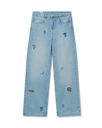 The embroidered motif jeans are stone-washed, denim crafted from embroidered cotton fabric and designed for a classic fit. Finished with embroidered artwork representing the house's symbology with nature and architecture, back pockets, and gold branded hardware and zip closure. Intended to be worn with its coordinating jacket. - Embroidered cotton fabric - Pocketing: 100% cotton - Motif embroidery - Colour: light vintage wash - Specialised dry clean only - Made in Turkey - Fits true to size, take your regular size - The model is 185cm/6'1 and is wearing a size M
