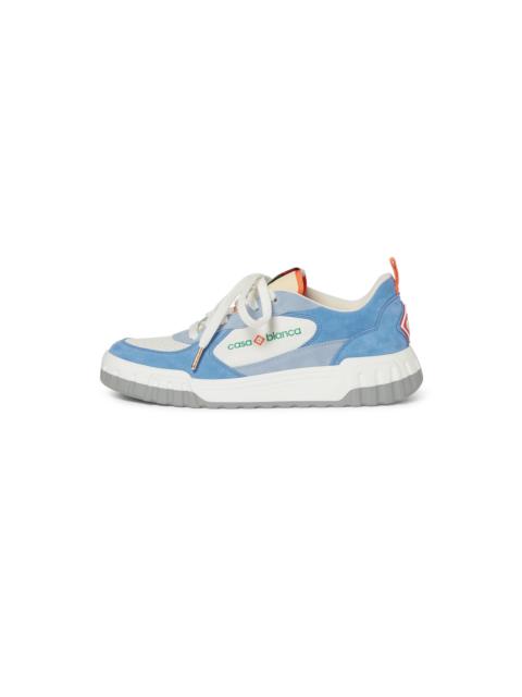 The design language of the Court Sneaker reflects the iconic silhouettes of the 90s. The colours featured throughout the rubber sole are a combination of the refined codes of tennis and classic architecture and create a unified palette throughout the shoe, with the focus on primary colours offset by tennis whites to create a sport focus colour story. The upper of the shoe features integrated, flowing panel lines as a nod to the iconic silhouettes of the 90s. Prominent Casablanca branding throughout is evident, including the brand’s signature diamond motif on the heel, silicone wordmark lateral panelling and the woven tennis court motif tongue label and insole, giving rise to its name, The Court. - Brown suede leather upper - Branded Casablanca diamond rubber patch on the hee - Silicon Casablanca Sport branding on lateral side - Woven Court tongue label - Tennis Court inspired outsole realised in tennis inspired primary colours - Gold lace tips