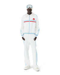 The hybrid ski track jacket is a refined apres-sport design crafted from technical dry fabric in white, inspired by crystalline purity of Japan's alpine countryside. Drawing from morning mist over snow-covered valleys and frozen lakes mirroring towering mountains, the design features performance-oriented construction with polyester lining. - Technical dry viscose fabric - Main: 84% viscose, 12% polyamide, 4% elastane - Lining: 100% polyester - Colour: white - Specialised dry clean only - Made in Portugal - Relaxed fit - The model is 187cm/6'1 and is wearing a size M - Exclusive to casablancaparis.com, Paris Flagship store and selected retailers