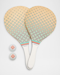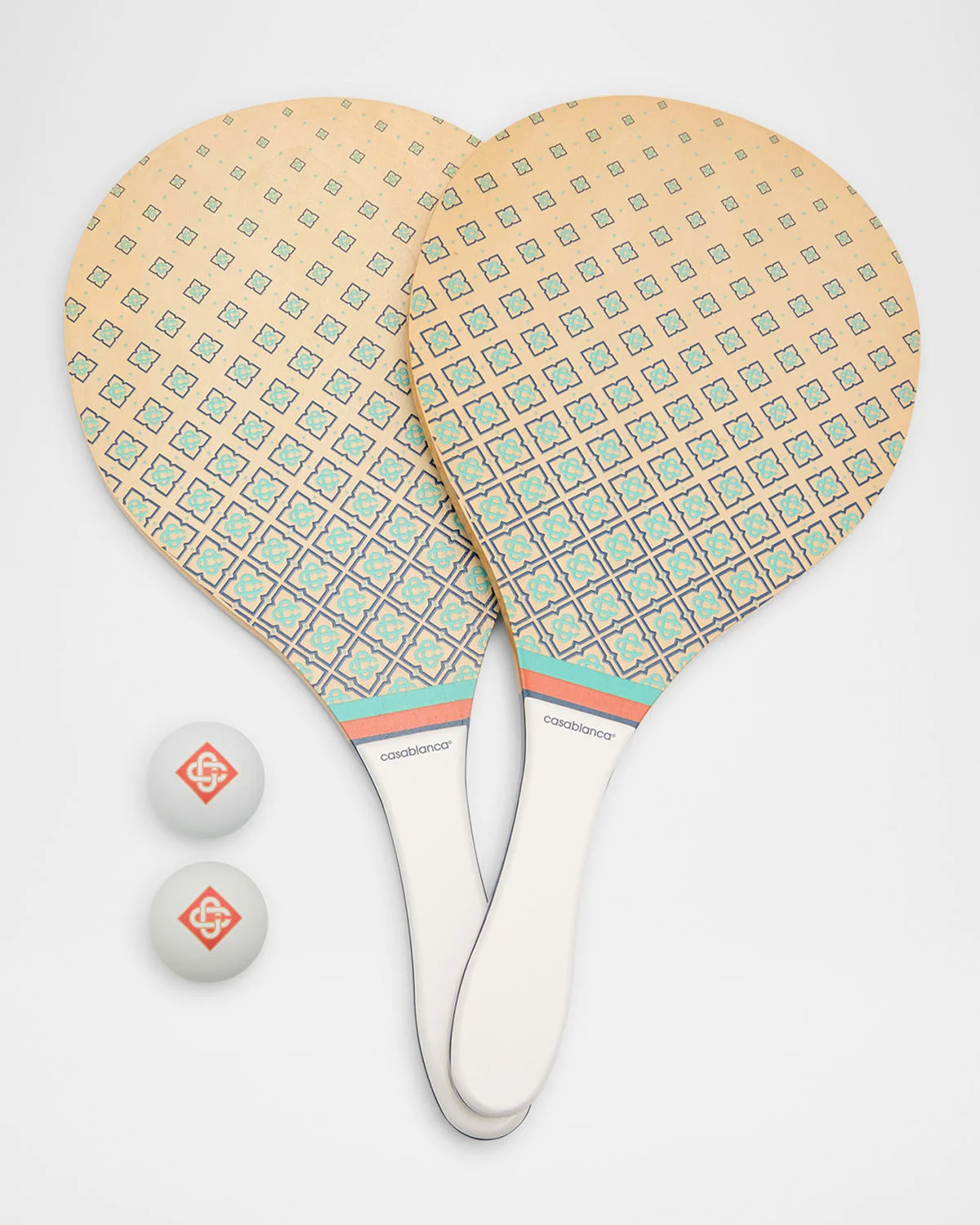 CASABLANCA beach bat and balls crafted from plywood and oilbased paint showcasing a degrade monogram print on the faces Approx. 15.35"L x 7.56"W Two beach bats with stripe detailing on the throat Two branded rubber balls Branded storage bag with strap Plywood Clean with a soft dry cloth Made in United Kingdom