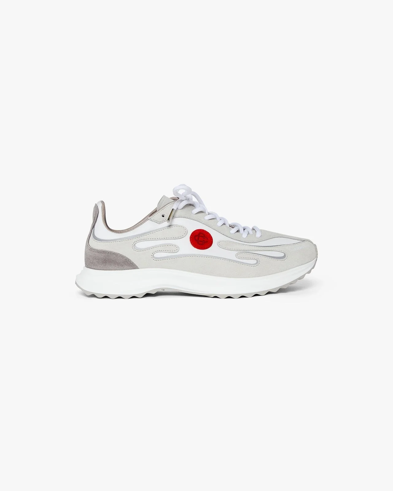 The men's Stade grey sneaker takes its name from the Ancient Greek measurement for the distance of a foot race, which later became the word for stadium. The style is inspired by performance running shoes and is a transportation of modern technology from ancient tradition. The sole features sculptured curves, which is a reference to our Atlantis shoe and a staple of Casablanca design. - Tonal textile and vegan suede fabric - Branded Casablanca diamond rubber patch on the heel - Silicon Casablanca Sport branding on lateral side - Woven tongue label - Gold lace tips - Made in Portugal - Fits true to size