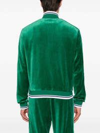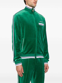 forest green velour front zip fastening branded zip puller high neck embroidered logo at the chest chest welt pocket side stripe detailing long sleeves ribbed cuffs and hem two side welt pockets mesh lining straight hem Size & Fit Model Measurements: Height: 1.86 m Bust/Chest: 92.0 cm Hips: 96.0 cm Waist: 78.0 cm Model wears size L Fabric and Care Designer Style ID: MPF24JTP25701 Designer Colour: EVERGREEN Composition: Outer: Polyester 100%, Organic cotton 95%, Elastane 5%, Polyamide 20%; Lining: Cotton 100% Washing instructions: Dry Clean Only Made in Portugal