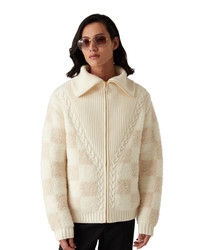 The Merino fleece jacket is a long-sleeved knitted design crafted from merino wool fabric featuring a checkered pattern. Completed with a zip closure, a rib v-shaped panel, collar, cuffs and hem - Merino wool fabric - Main: 92% merino wool 7% polyamide 1% elastane - Colour: white - Specialised dry clean only - Fits true to size, take your regular size - The model is 187cm/6'1 and is wearing a size M