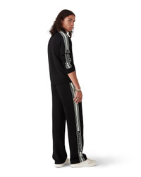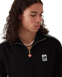 The Product Title is a long-sleeve design crafted from merino wool fabric. Completed with a zip closure, contrast placket detail, a polo neck, stripe details down the sleeves, rib cuffs and hem, and a Casablanca logo. - Merino wool fabric - Main: 100% merino wool - Embroidery: 100% polyester - Colour: black - Specialised dry clean only - Made in China - The model is 187cm/6'1 and is wearing a size M