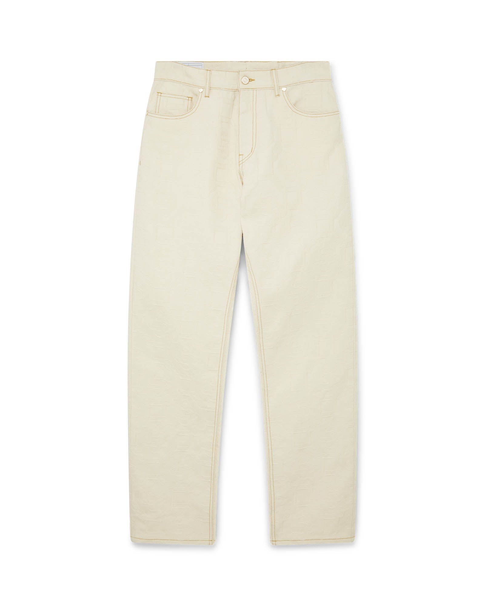 The Monogram jacquard straight-leg jeans are crafted from a cotton fabric in the house's signature denim for a classic fit. Completed with side pockets and gold hardware closure. Intended to be worn with its coordinating jacket. Monogram Denim fabric 100% cotton Colour: off-white Specialised dry clean only Made in Portugal Fits true to size, take your regular size The model is 187cm/6’1 and is wearing a size 32