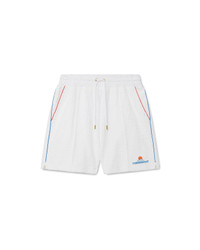The Monogram towelling shorts are a classic design crafted from a monogram towelling fabric. Completed with an elasticated waistband, gold-tipped drawstring fastening, gold eyelets, pin tuck seams down the front, a back pocket, slanted front pockets, and piping details on the back and front pockets, and down the sides. - Monogram towelling fabric - Main: 86% cotton 13% polyamide 1% elastane - Lining: 100% cotton - Colour: black - Delicate machine wash - Made in Portugal - Relaxed fit - The model is 187cm/6'1 and is wearing a size M